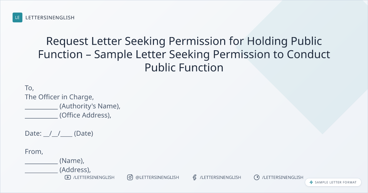 Request Letter Seeking Permission for Holding Public Function – Sample Letter Seeking Permission to Conduct Public Function