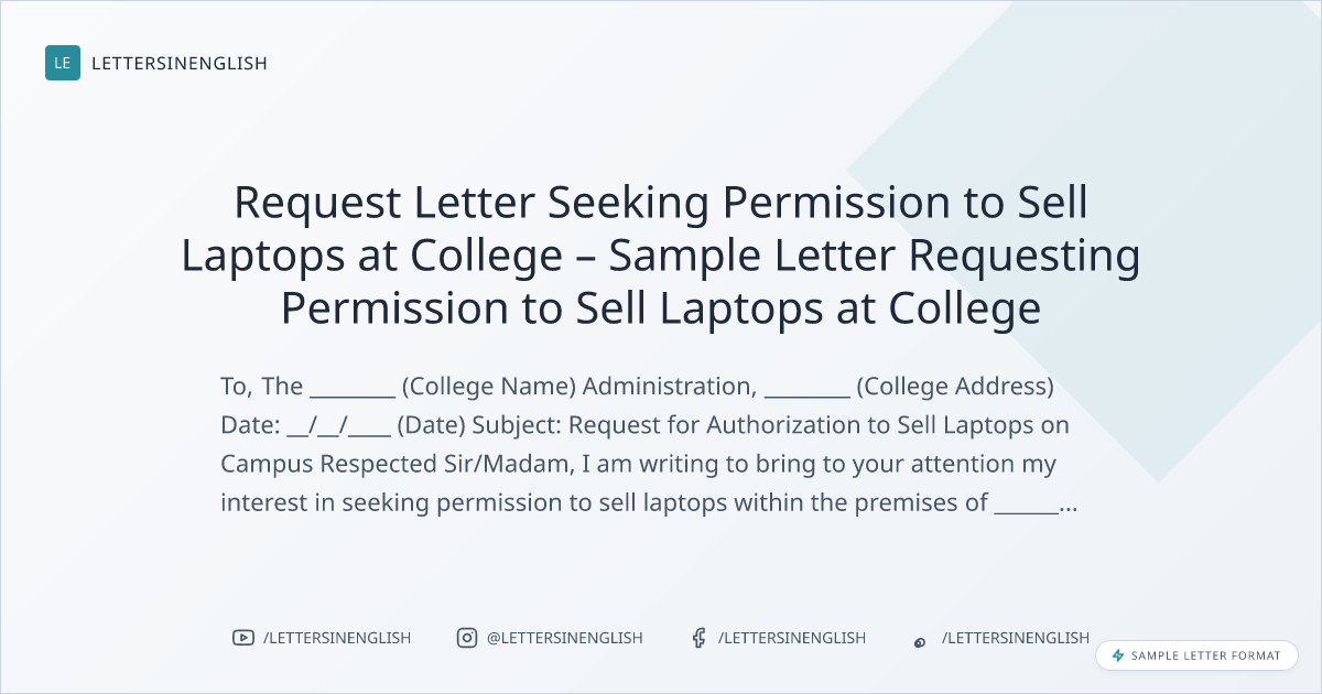 Request Letter Seeking Permission to Sell Laptops at College – Sample Letter Requesting Permission to Sell Laptops at College