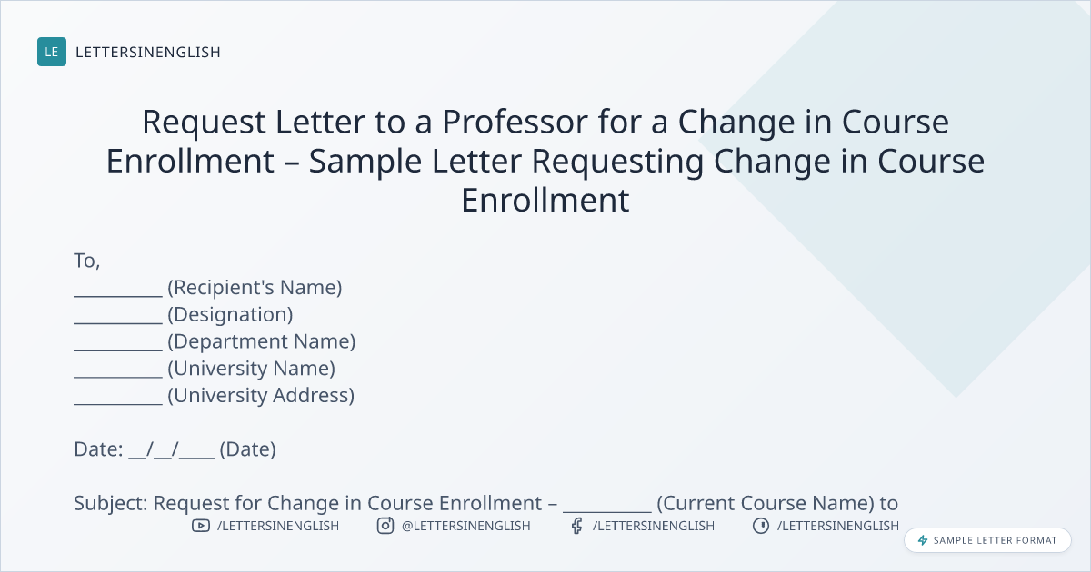 Request Letter to a Professor for a Change in Course Enrollment – Sample Letter Requesting Change in Course Enrollment