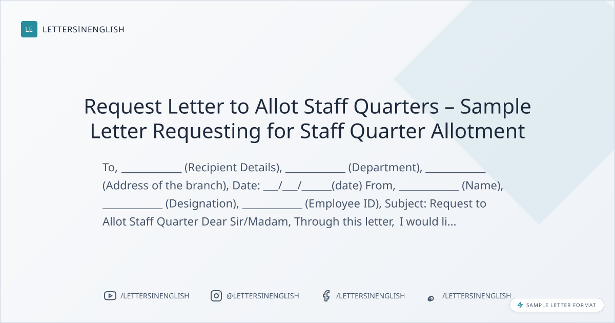 Request Letter to Allot Staff Quarters – Sample Letter Requesting for Staff Quarter Allotment