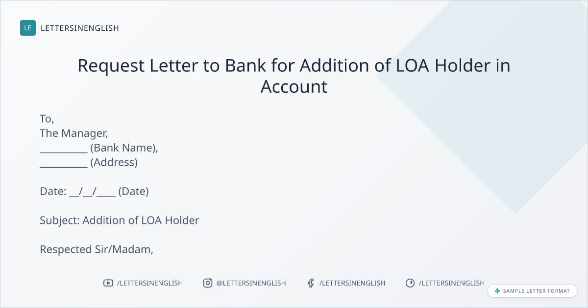 Request Letter to Bank for Addition of LOA Holder in Account