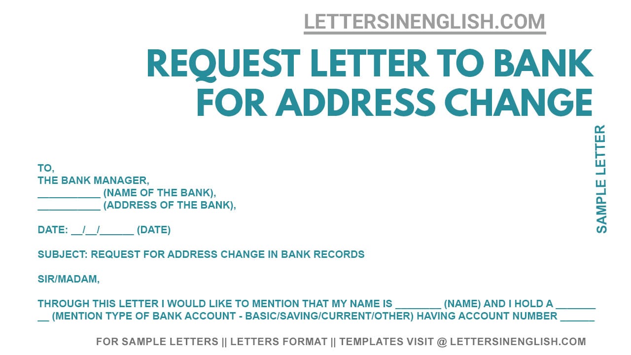- letter to bank manager for change of address in bank records