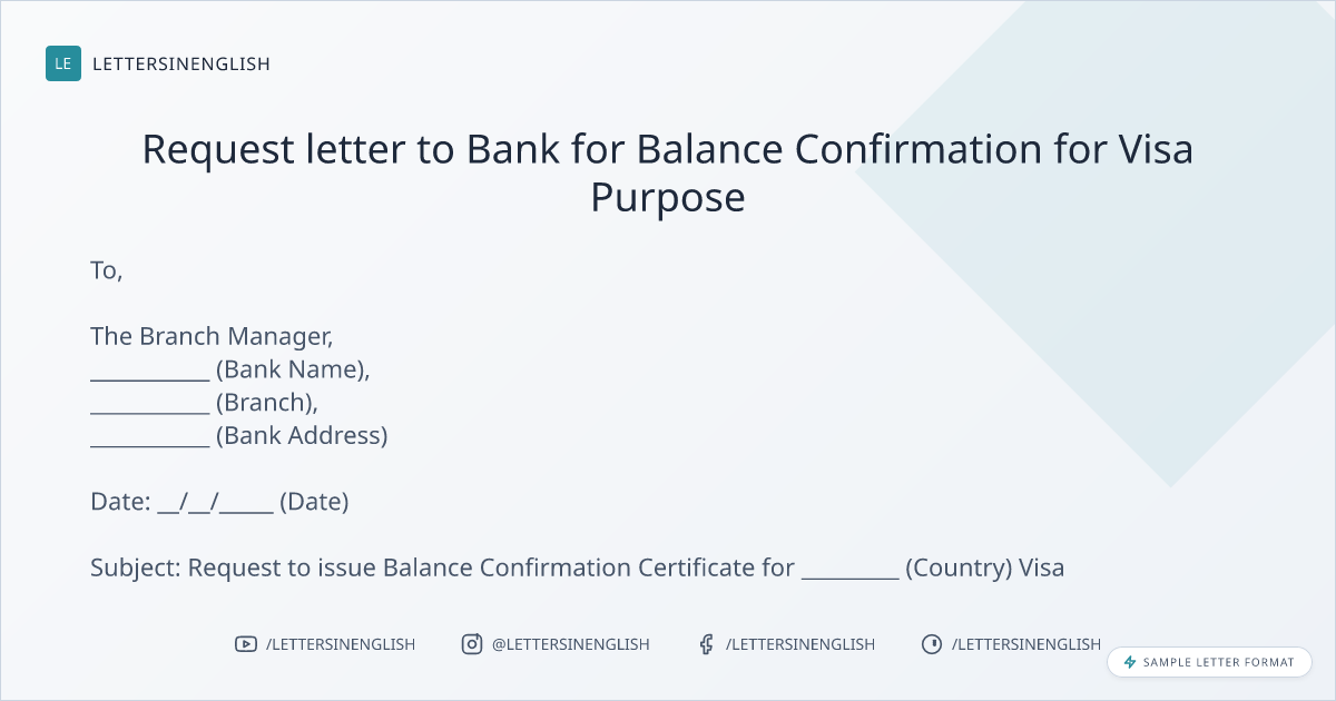 Letter to Bank Requesting Balance Confirmation Certificate for Visa Application