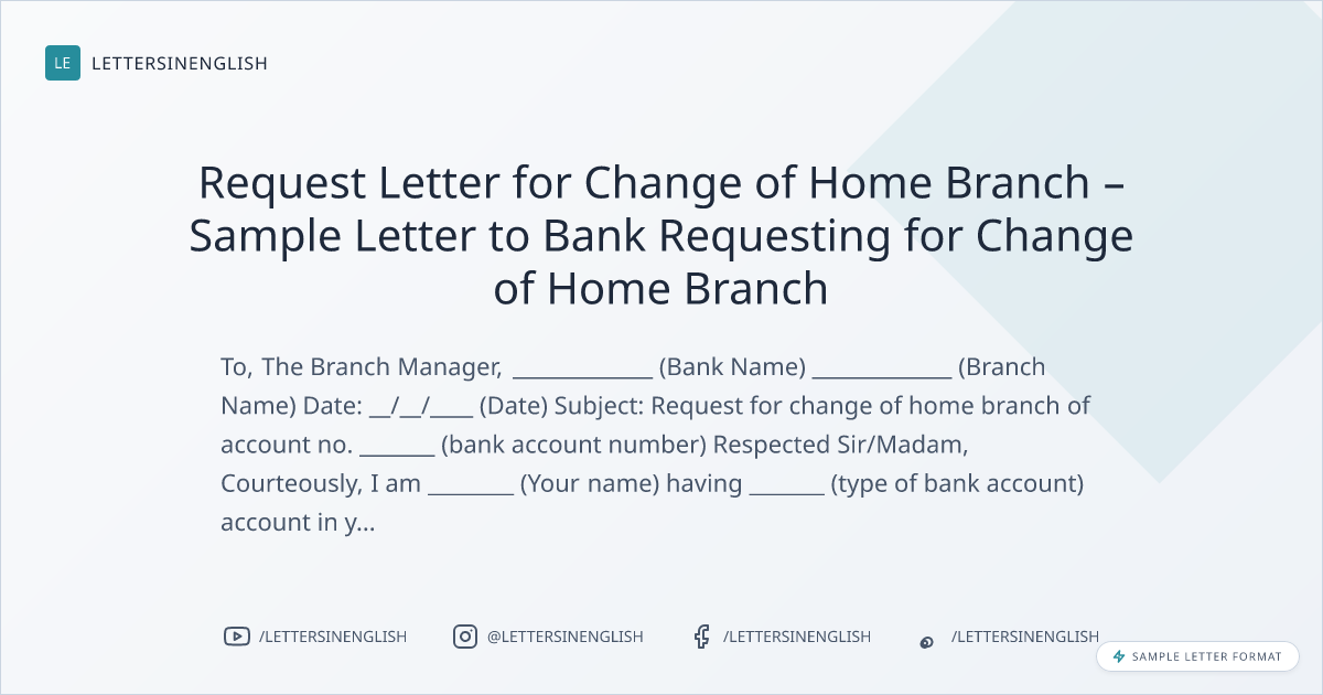 Request Letter for Change of Home Branch – Sample Letter to Bank Requesting for Change of Home Branch