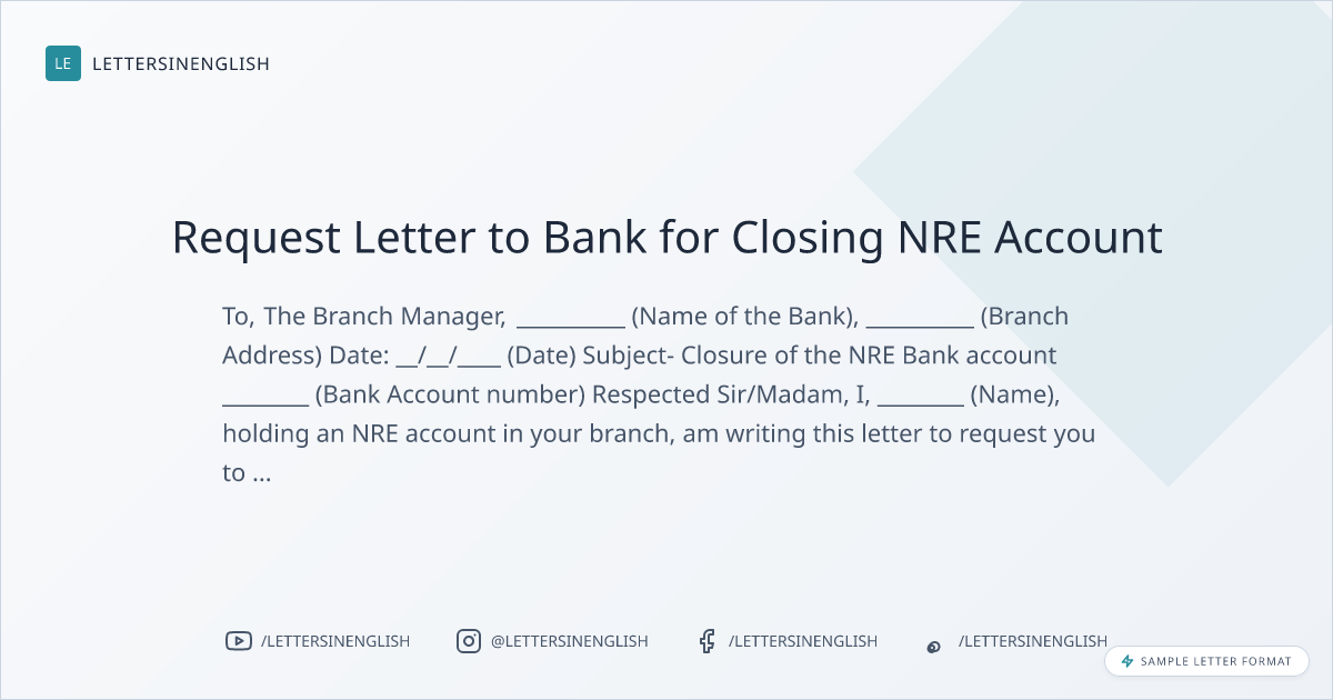 Request Letter to Bank for NRE Account Closure
