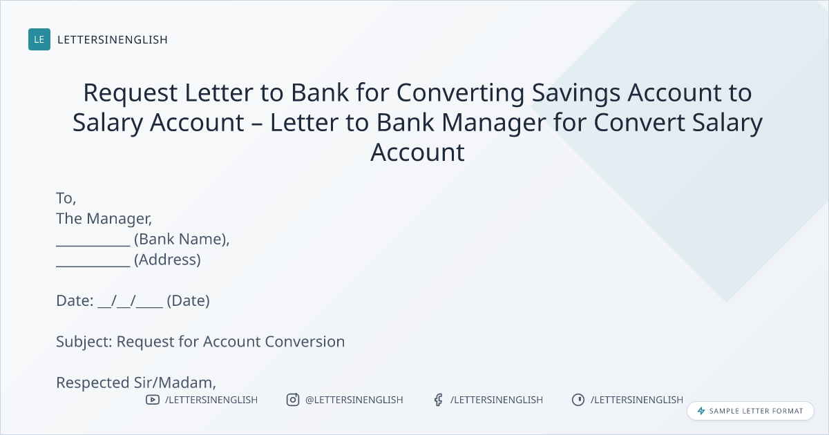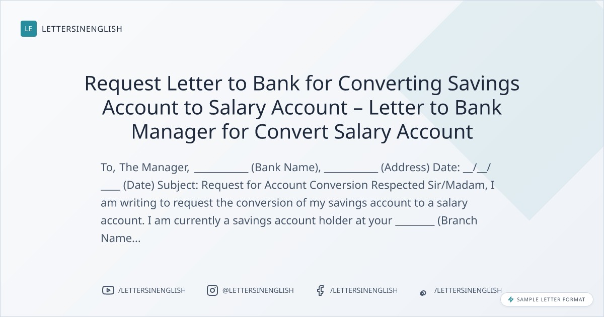 Request Letter to Bank for Converting Savings Account to Salary Account – Letter to Bank Manager for Convert Salary Account