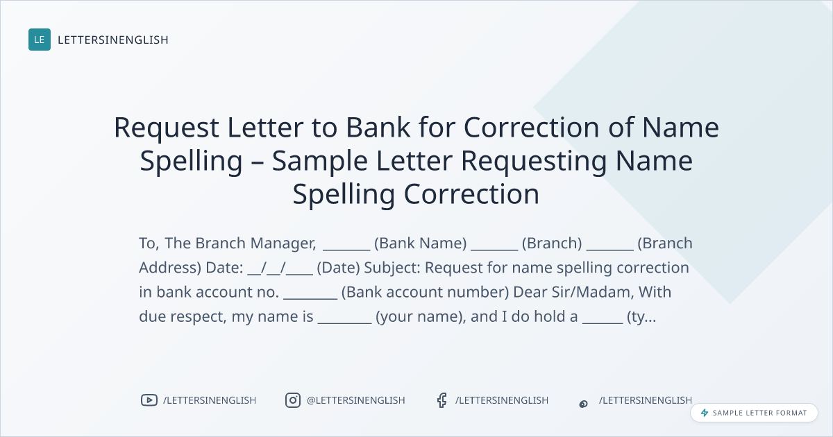 Request Letter to Bank for Correction of Name Spelling – Sample Letter Requesting Name Spelling Correction
