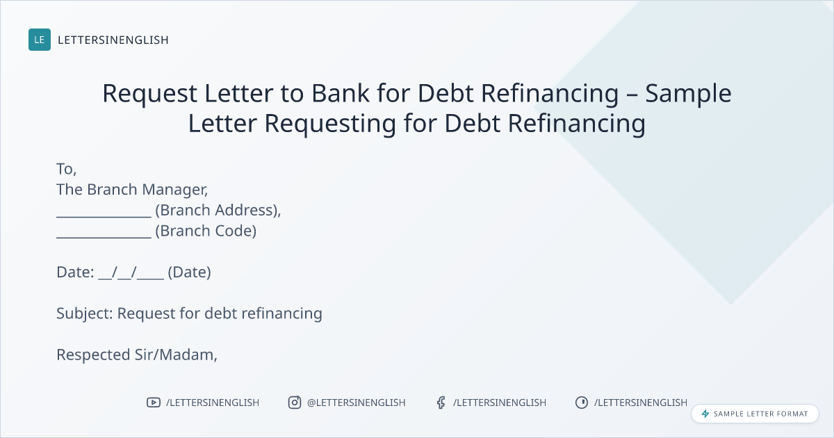 Request Letter to Bank for Debt Refinancing – Sample Letter Requesting for Debt Refinancing