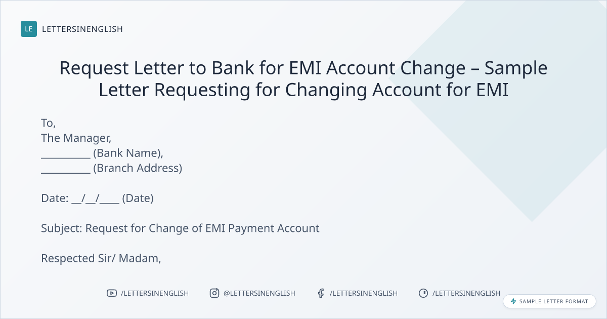 Request Letter to Bank for EMI Account Change – Sample Letter Requesting for Changing Account for EMI