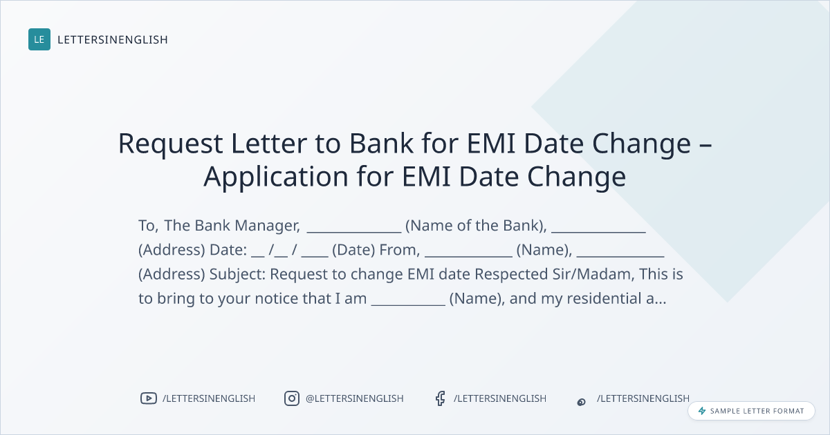Request Letter to Bank for EMI Date Change – Application for EMI Date Change