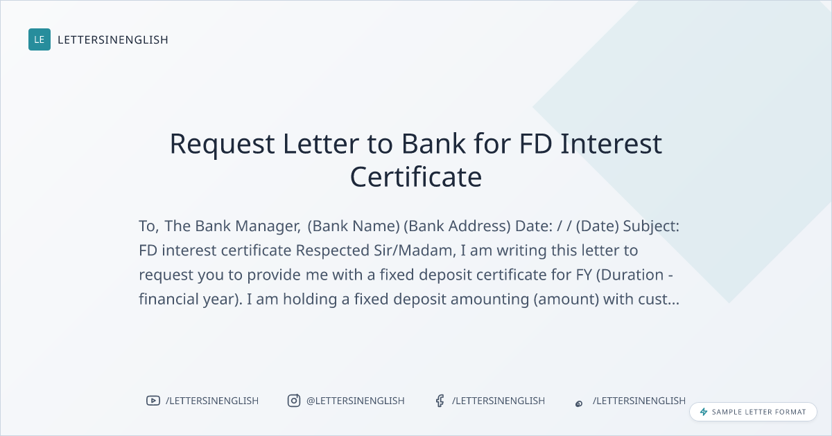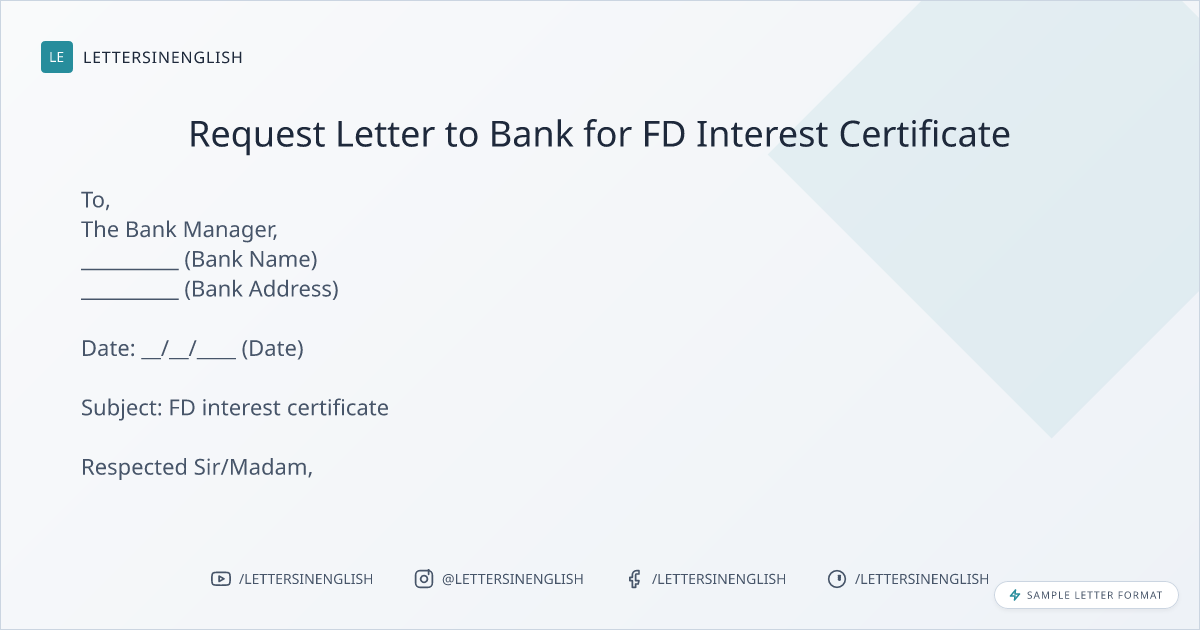 Sample Letter to Bank for FD Interest Certificate