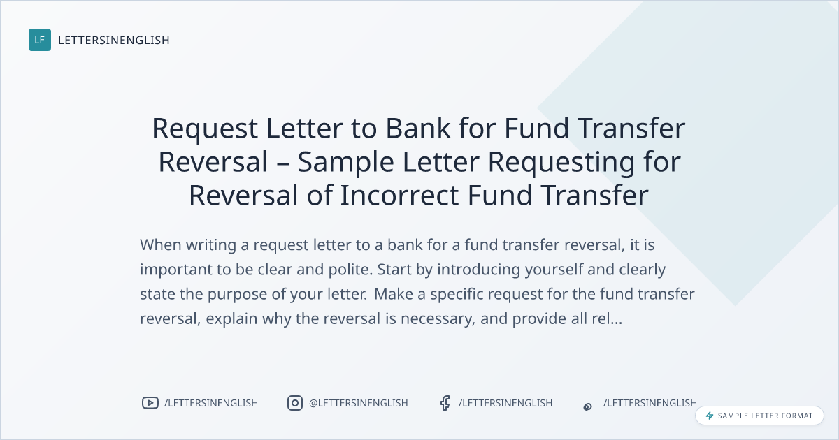 Request Letter to Bank for Fund Transfer Reversal – Sample Letter Requesting for Reversal of Incorrect Fund Transfer