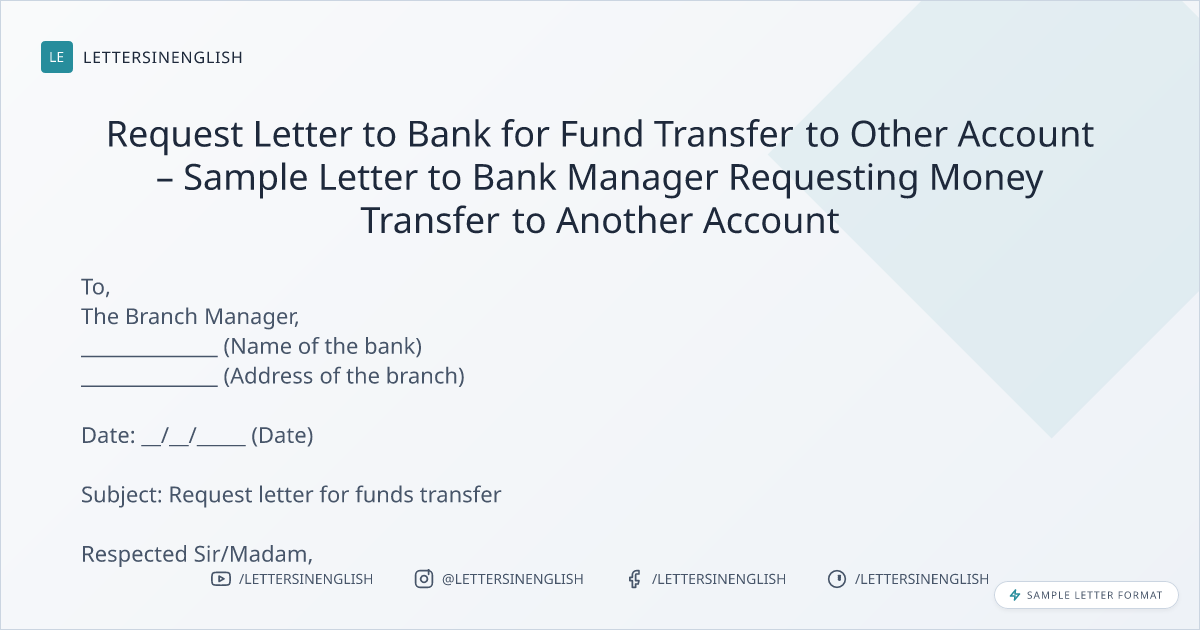 Request Letter to Bank for Fund Transfer to Other Account – Sample Letter to Bank Manager Requesting Money Transfer to Another Account