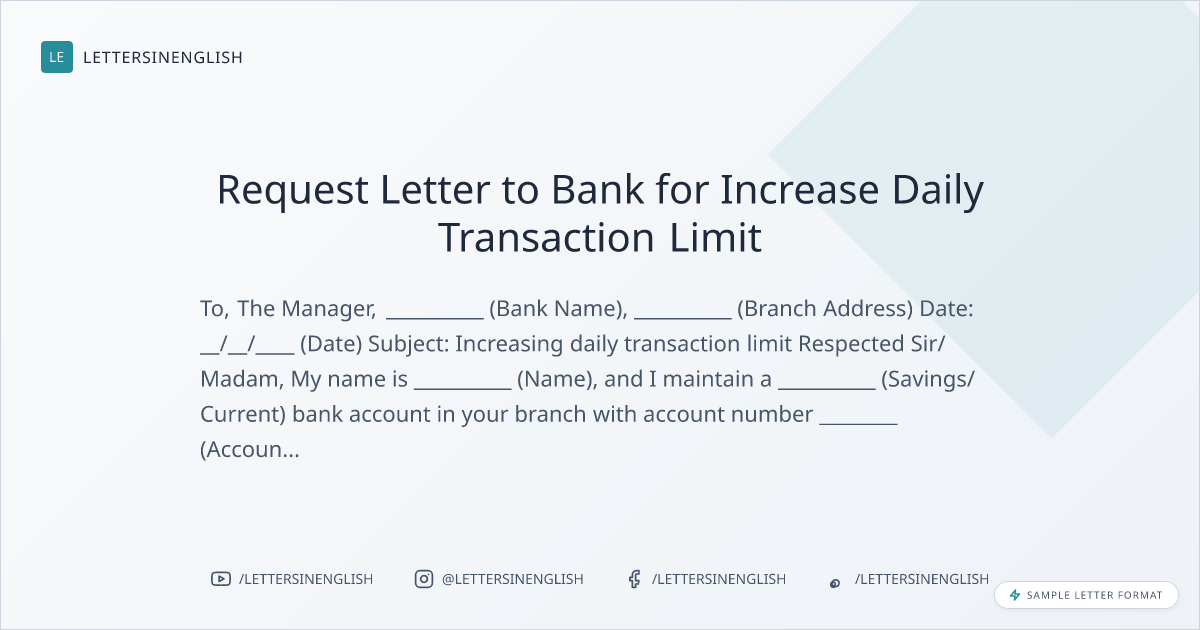 Sample Letter for Increasing Daily Transaction Limit
