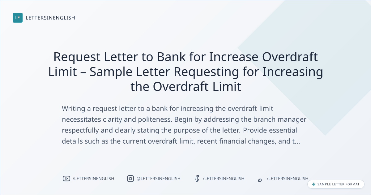 Request Letter to Bank for Increase Overdraft Limit – Sample Letter Requesting for Increasing the Overdraft Limit
