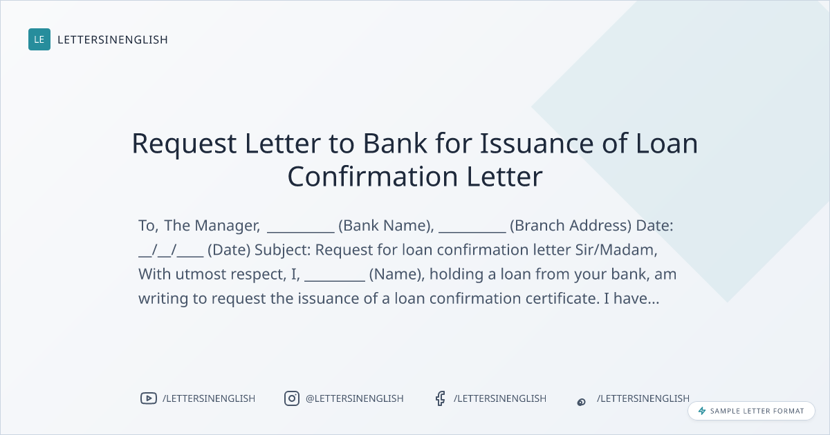 Request Letter to Bank for Issuance of Loan Confirmation Letter