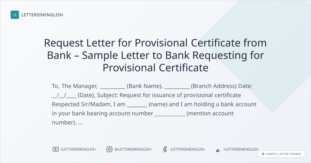 Request Letter for Provisional Certificate from Bank – Sample Letter to Bank Requesting for Provisional Certificate