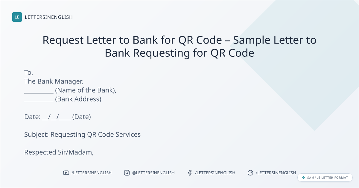 Request Letter to Bank for QR Code – Sample Letter to Bank Requesting for QR Code