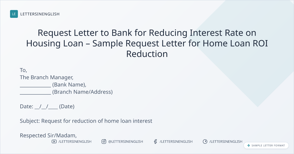 Request Letter to Bank for Reducing Interest Rate on Housing Loan – Sample Request Letter for Home Loan ROI Reduction