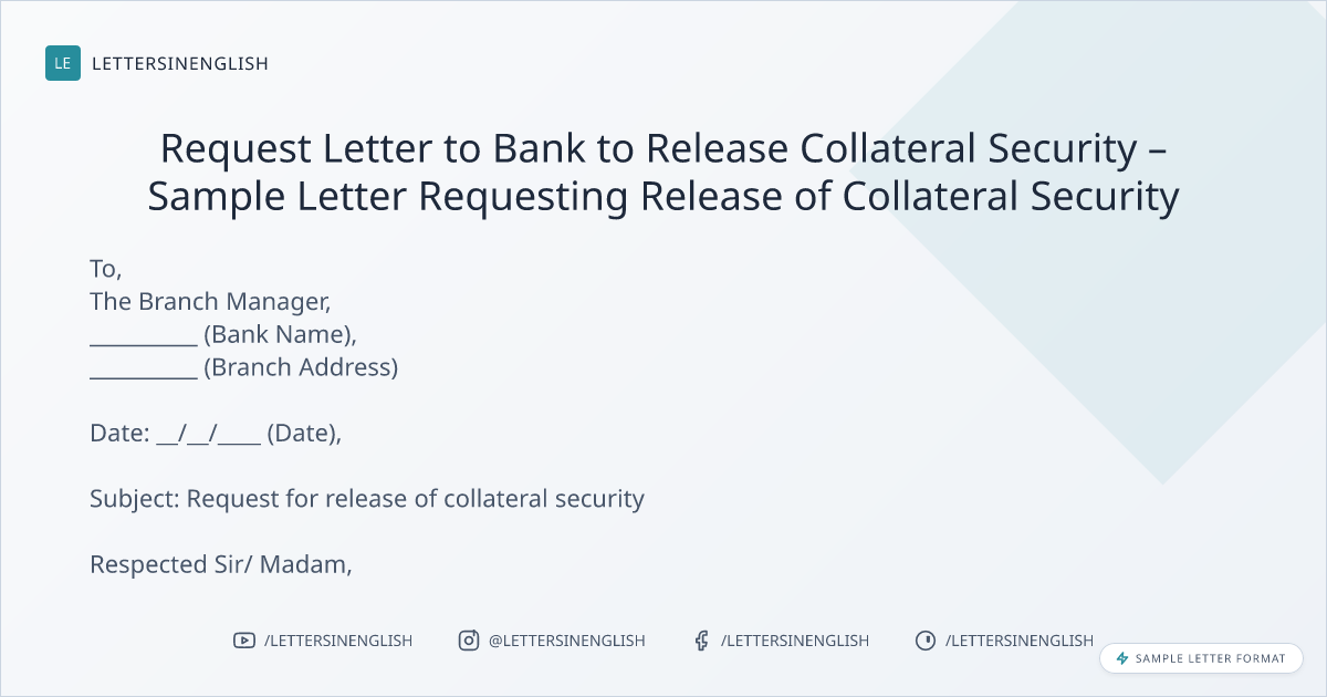 Request Letter to Bank to Release Collateral Security – Sample Letter Requesting Release of Collateral Security