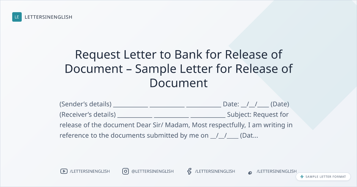 Request Letter to Bank for Release of Document – Sample Letter for Release of Document