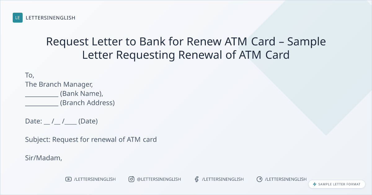 Sample Letter for renewal of ATM card