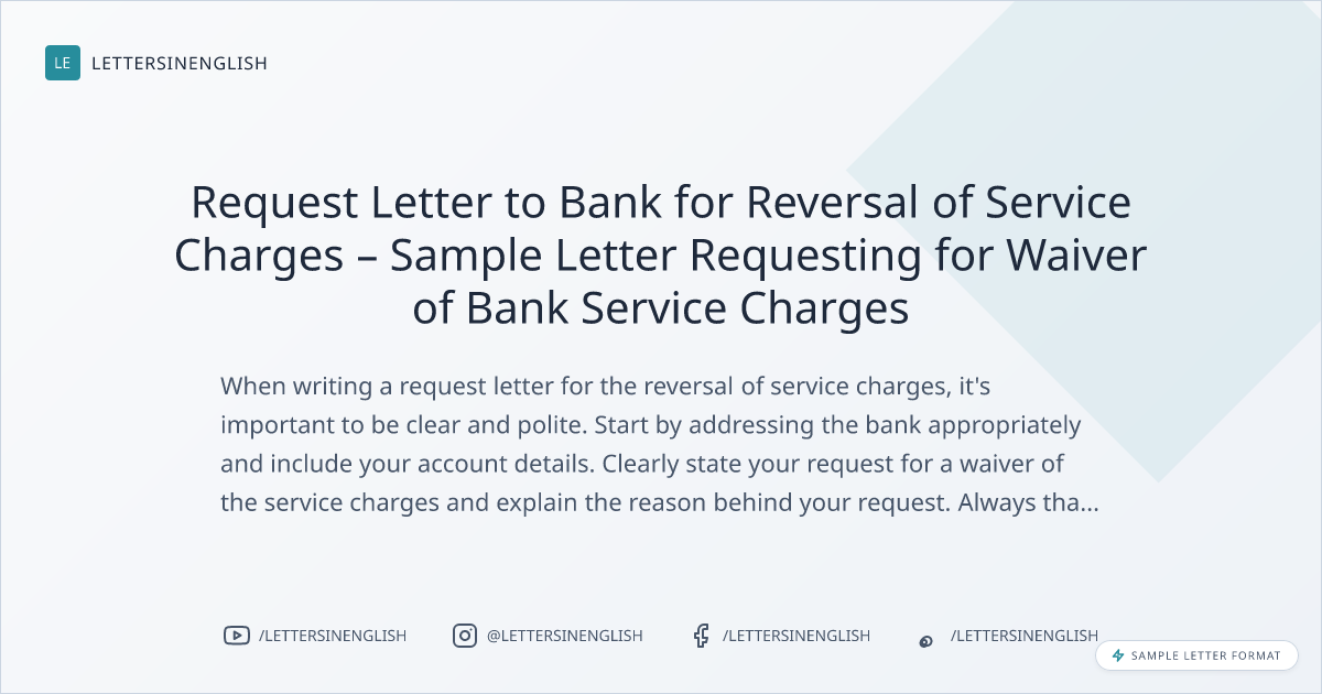 Sample Letter: Request Letter to Bank for Reversal of Service Charges