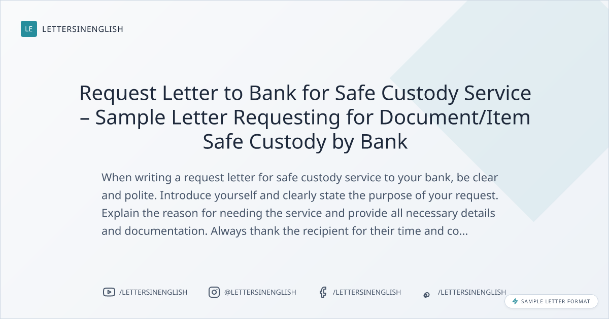 Request Letter to Bank for Safe Custody Service – Sample Letter Requesting for Document/Item Safe Custody by Bank