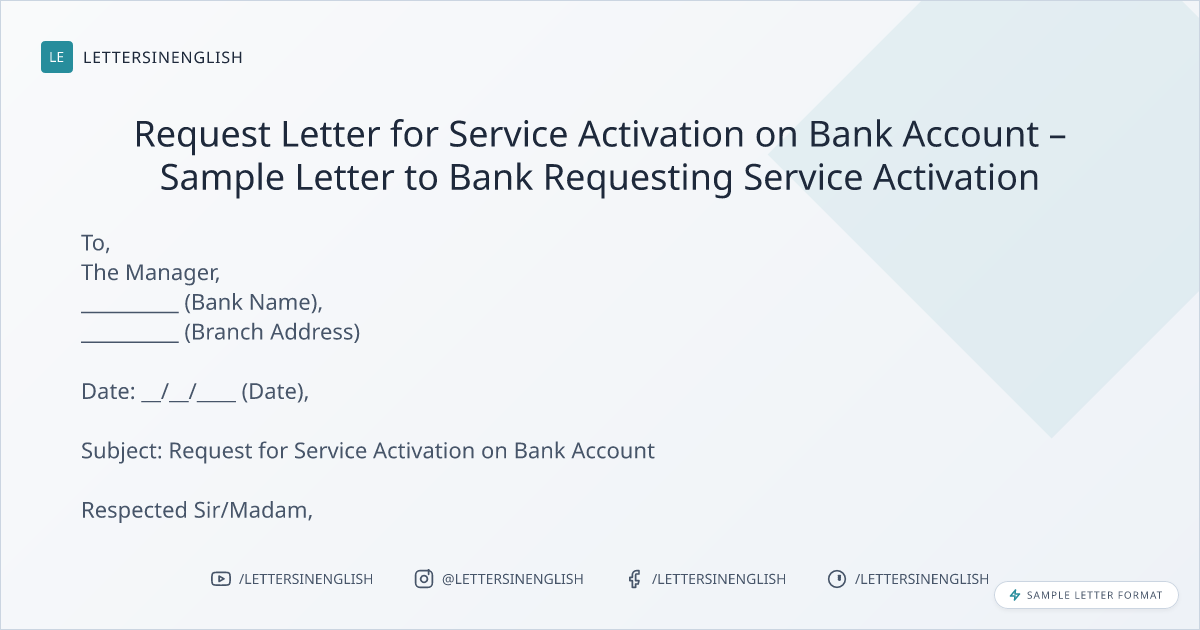 Request Letter for Service Activation on Bank Account – Sample Letter to Bank Requesting Service Activation