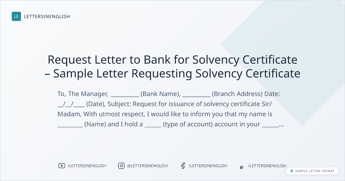 Request Letter to Bank for Solvency Certificate – Sample Letter Requesting Solvency Certificate