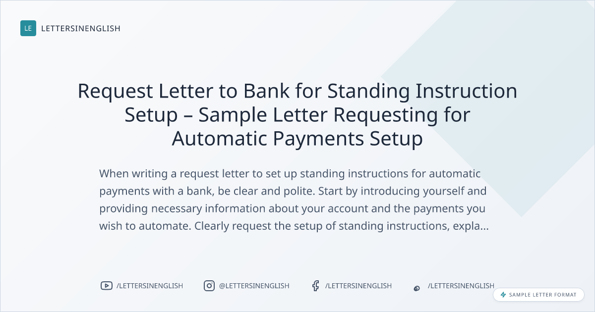 Request Letter to Bank for Standing Instruction Setup – Sample Letter Requesting for Automatic Payments Setup