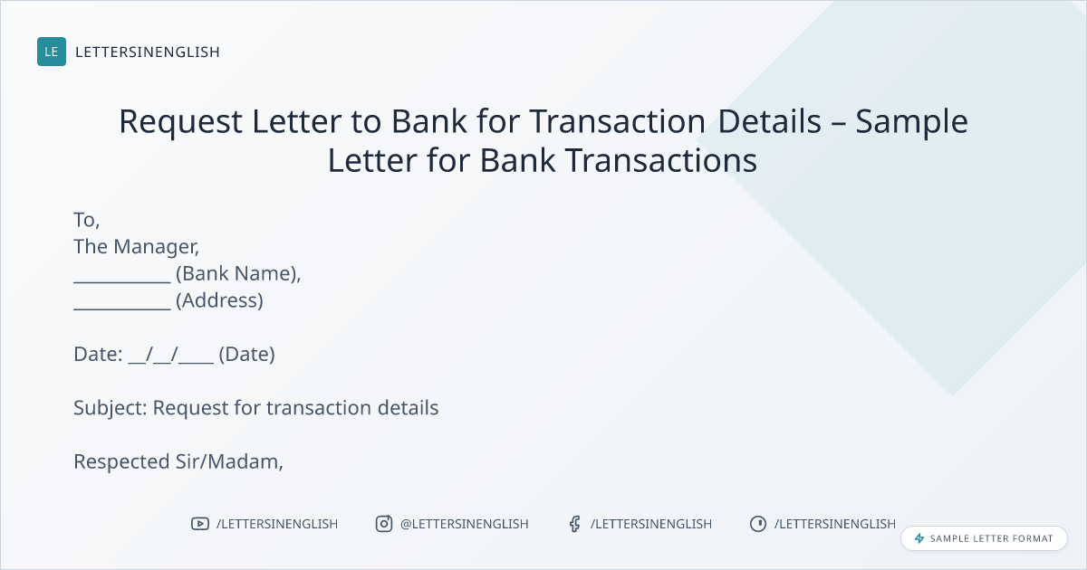 Request Letter to Bank for Transaction Details – Sample Letter for Bank Transactions