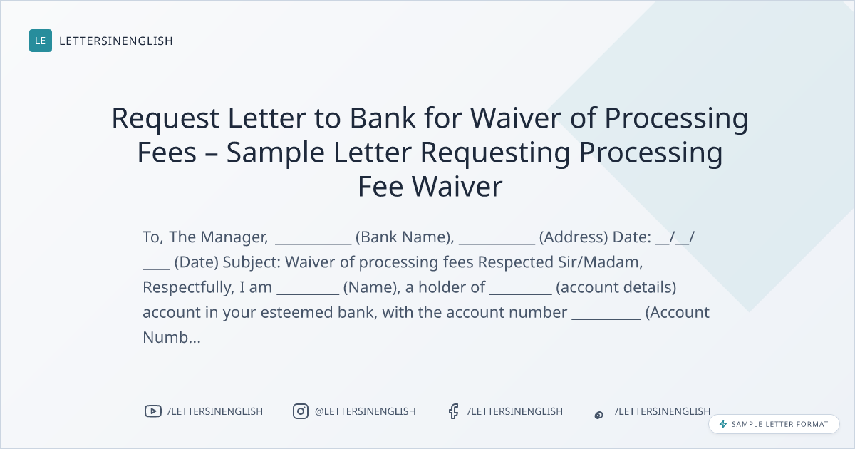 Request Letter to Bank for Waiver of Processing Fees – Sample Letter Requesting Processing Fee Waiver