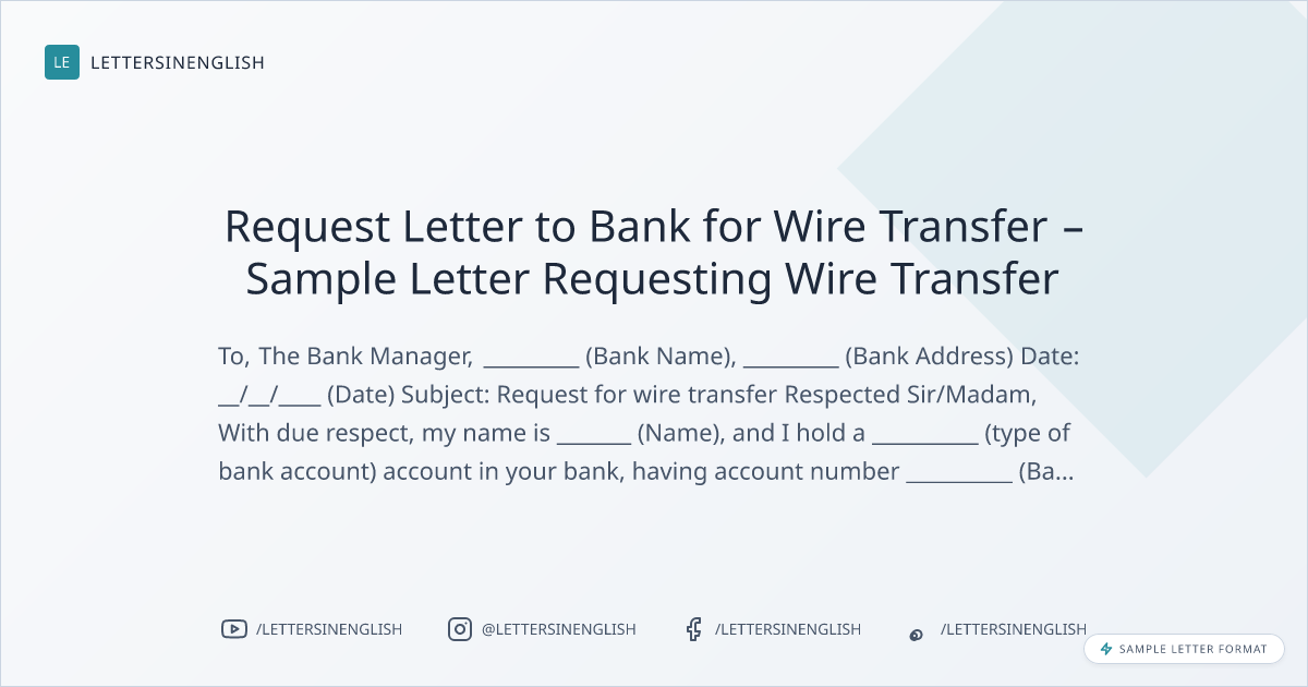 Request Letter to Bank for Wire Transfer – Sample Letter Requesting Wire Transfer