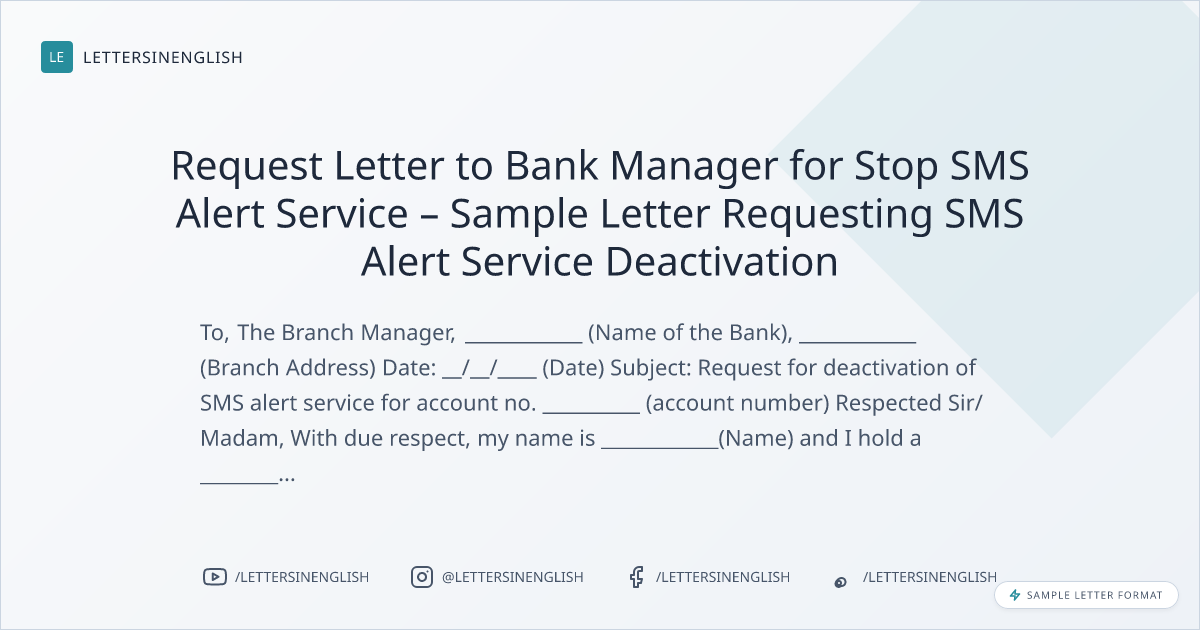 Request Letter to Bank Manager for Stop SMS Alert Service – Sample Letter Requesting SMS Alert Service Deactivation