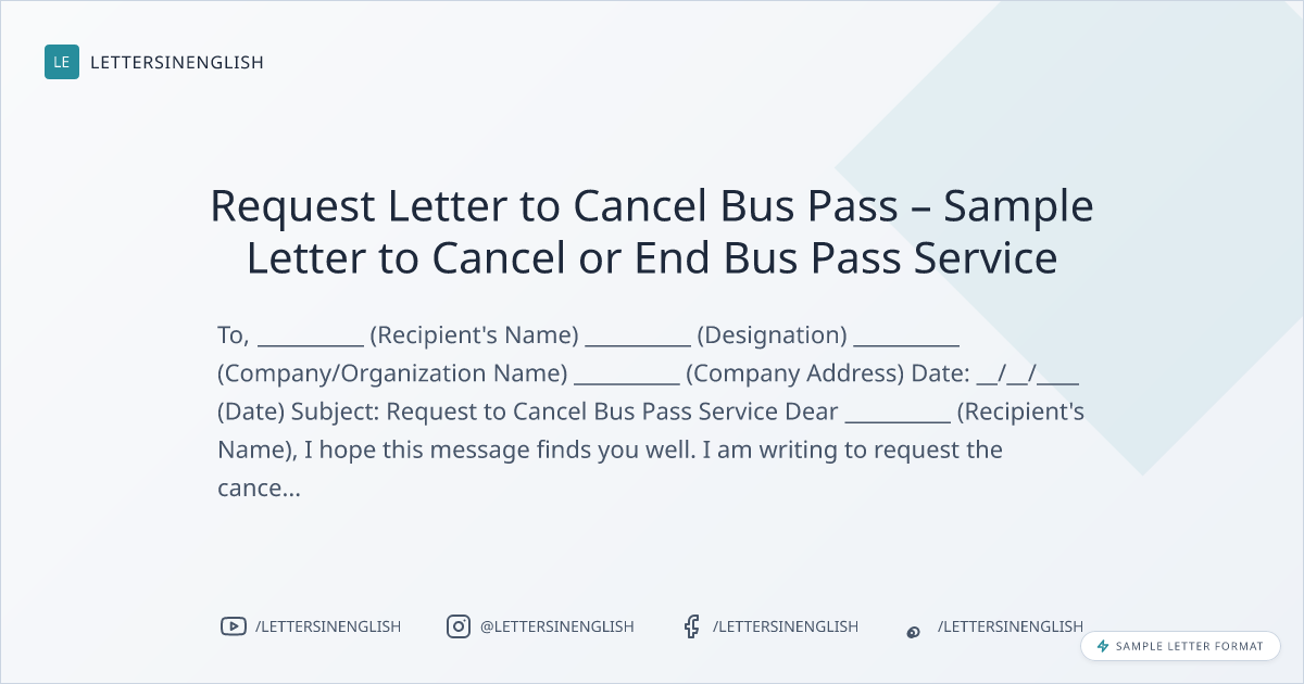 Request Letter to Cancel Bus Pass – Sample Letter to Cancel or End Bus Pass Service