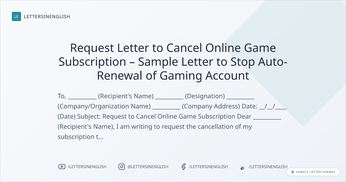 Request Letter to Cancel Online Game Subscription – Sample Letter to Stop Auto-Renewal of Gaming Account