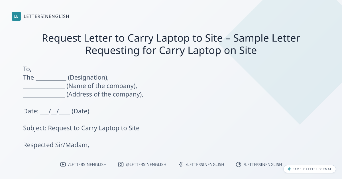 Request Letter to Carry Laptop to Site – Sample Letter Requesting for Carry Laptop on Site