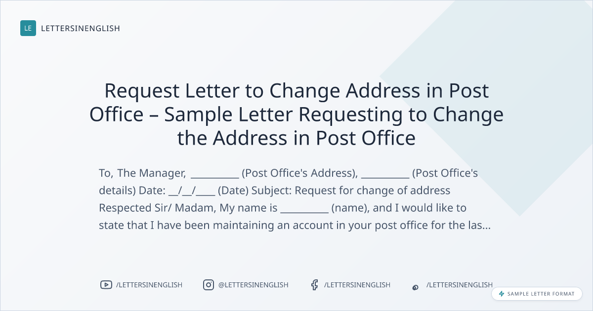 Request Letter to Change Address in Post Office – Sample Letter Requesting to Change the Address in Post Office