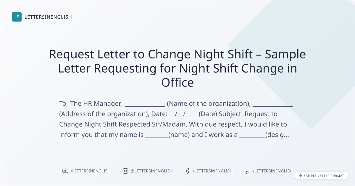 Request Letter to Change Night Shift – Sample Letter Requesting for Night Shift Change in Office