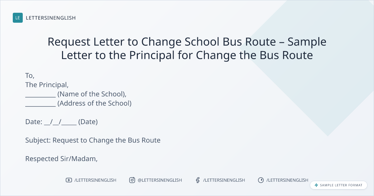 Request Letter to Change School Bus Route – Sample Letter to the Principal for Change the Bus Route
