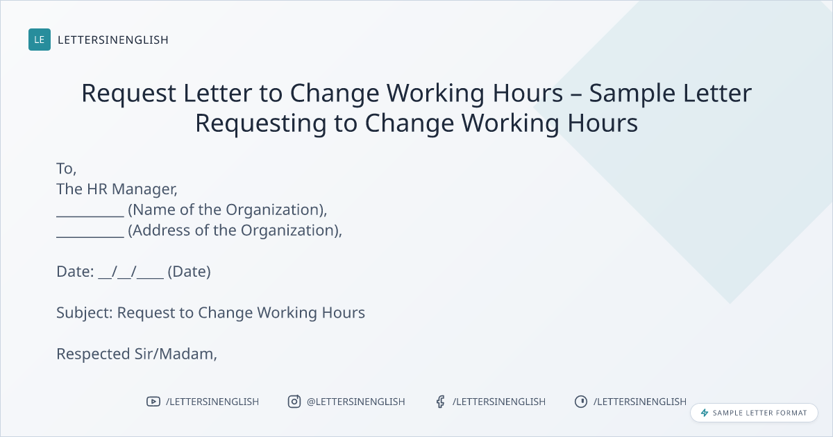 Request Letter to Change Working Hours – Sample Letter Requesting to Change Working Hours