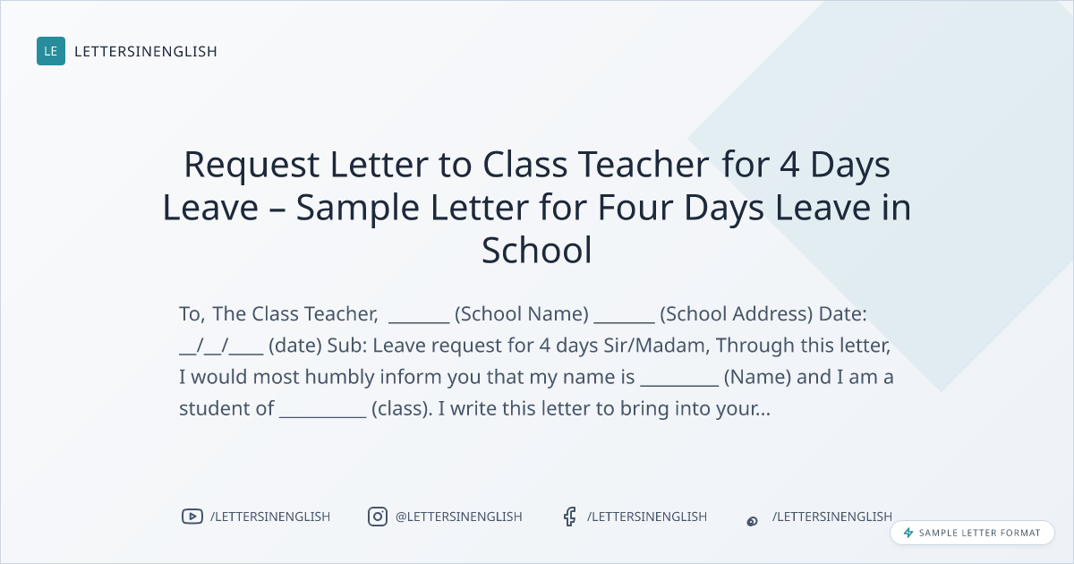Request Letter to Class Teacher for 4 Days Leave – Sample Letter for Four Days Leave in School