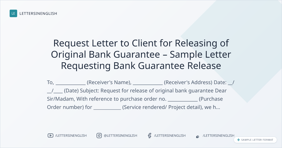 Request Letter to Client for Releasing of Original Bank Guarantee – Sample Letter Requesting Bank Guarantee Release