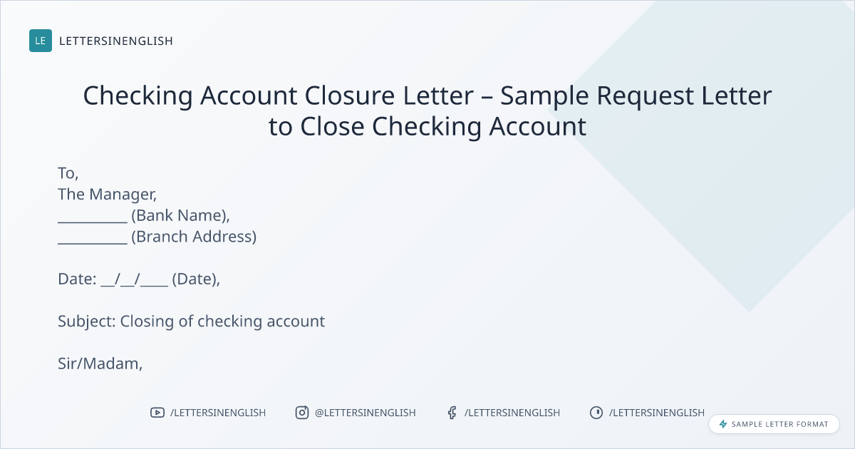 Checking Account Closure Letter – Sample Request Letter to Close Checking Account