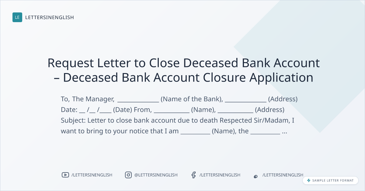 Request Letter to Close Deceased Bank Account – Deceased Bank Account Closure Application