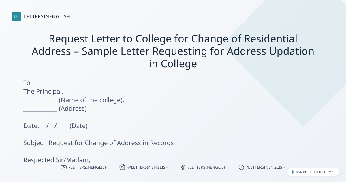 Request Letter to College for Change of Residential Address – Sample Letter Requesting for Address Updation in College