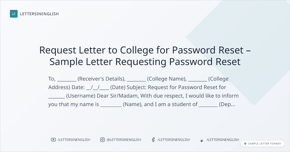 Request Letter to College for Password Reset – Sample Letter Requesting Password Reset