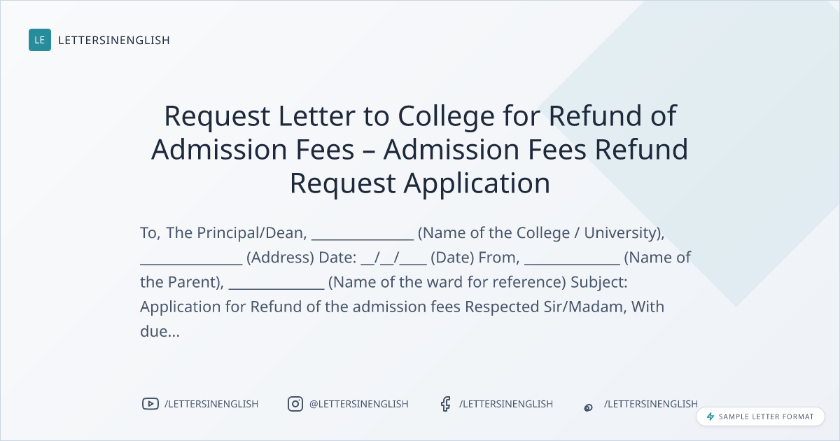 Request Letter to College for Refund of Admission Fees – Admission Fees Refund Request Application