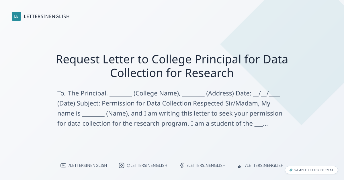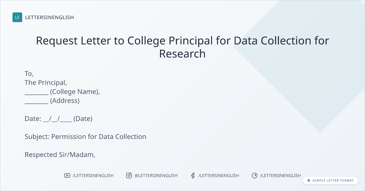Request Letter to College Principal for Data Collection for Research